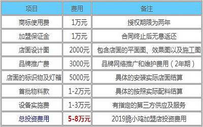 脆小鸡加盟费: