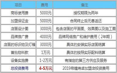 帝煌烤卤加盟费: