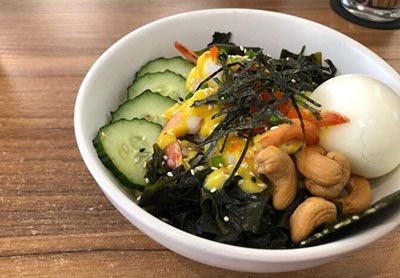 1、芥末蜂蜜虾仁海饭。整体囗感一点都不腻虾很嫩搭配下面的酱油饭味道,酱油饭有妈妈的味道掊配黄芥末酱味道很清新值得下次再打卡!