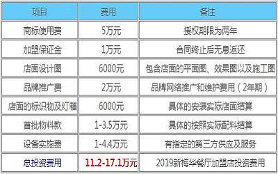 那么,新梅华餐厅加盟费多少钱?加盟一家中餐厅起步只要11.2万!