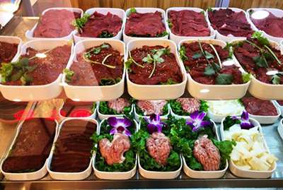 鲜嫩诱人的涮菜:食材的新鲜度,对吃货来说是非常重要的一环,据店长介绍,他们家所有的食材基本能保证当天食材当天用,少数可以存放的肉类会用两天,大部分食材都是当天的,以保证新鲜度和口感。数种秘制锅底,搭配二十余种特色蘸料,百余种菜品在旋转设备上不停旋转,任意挑选,尽享便捷的快餐式小火锅带来的健康与时尚。